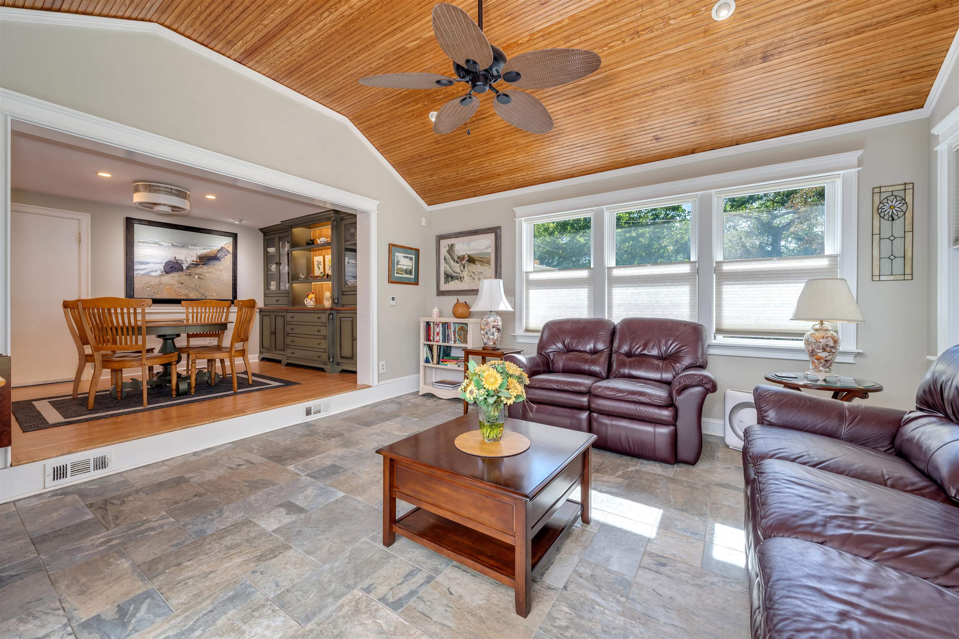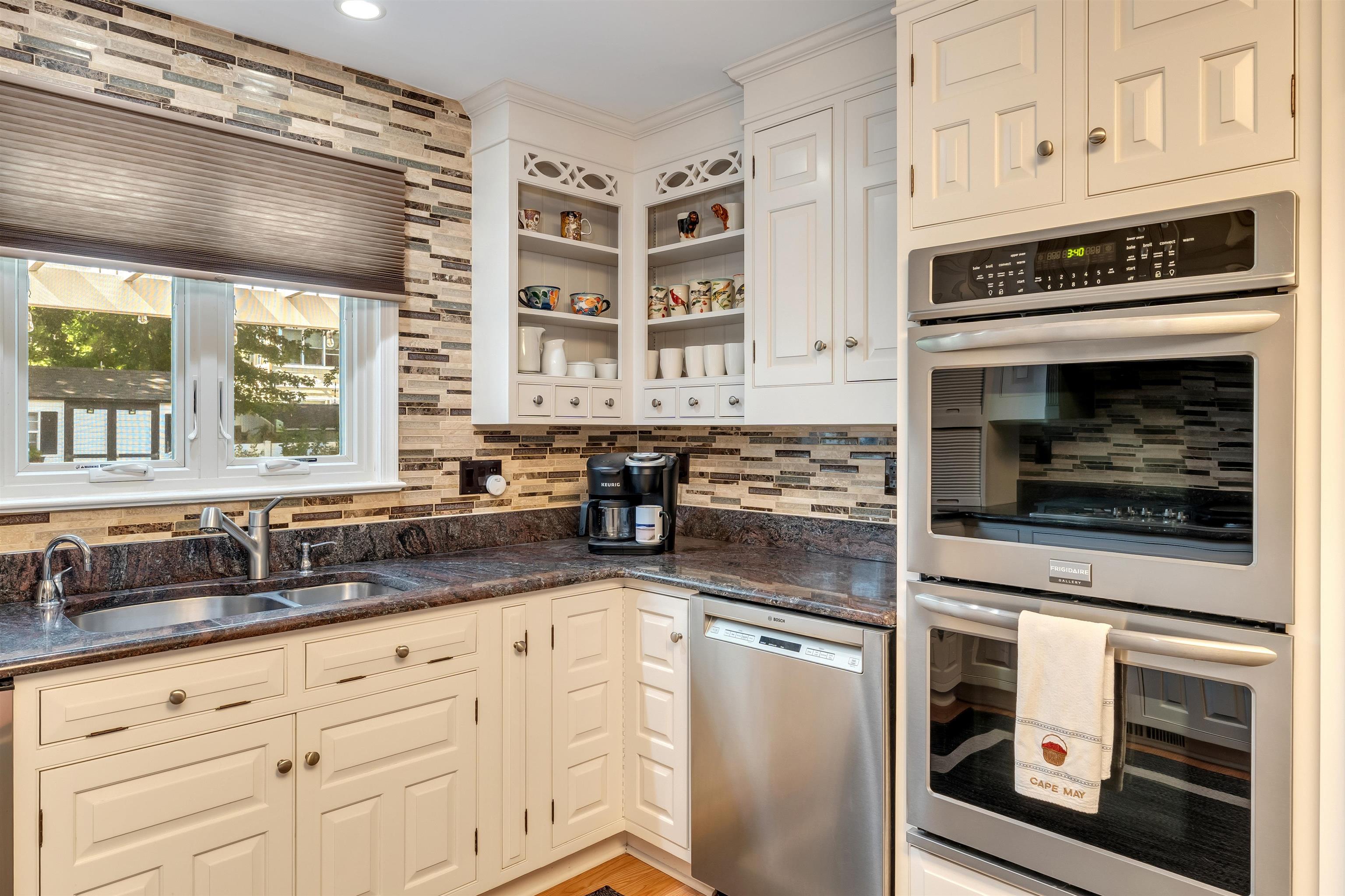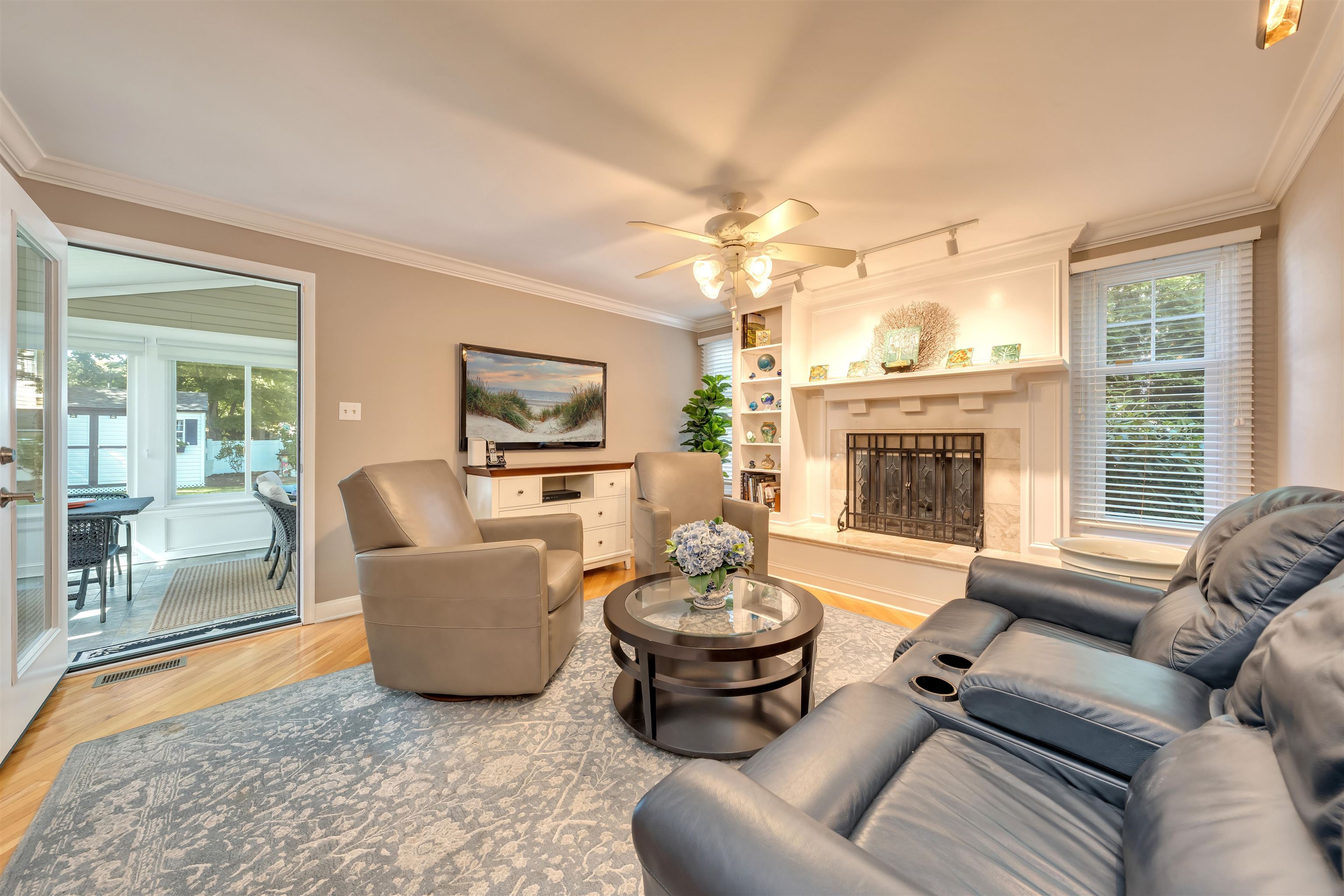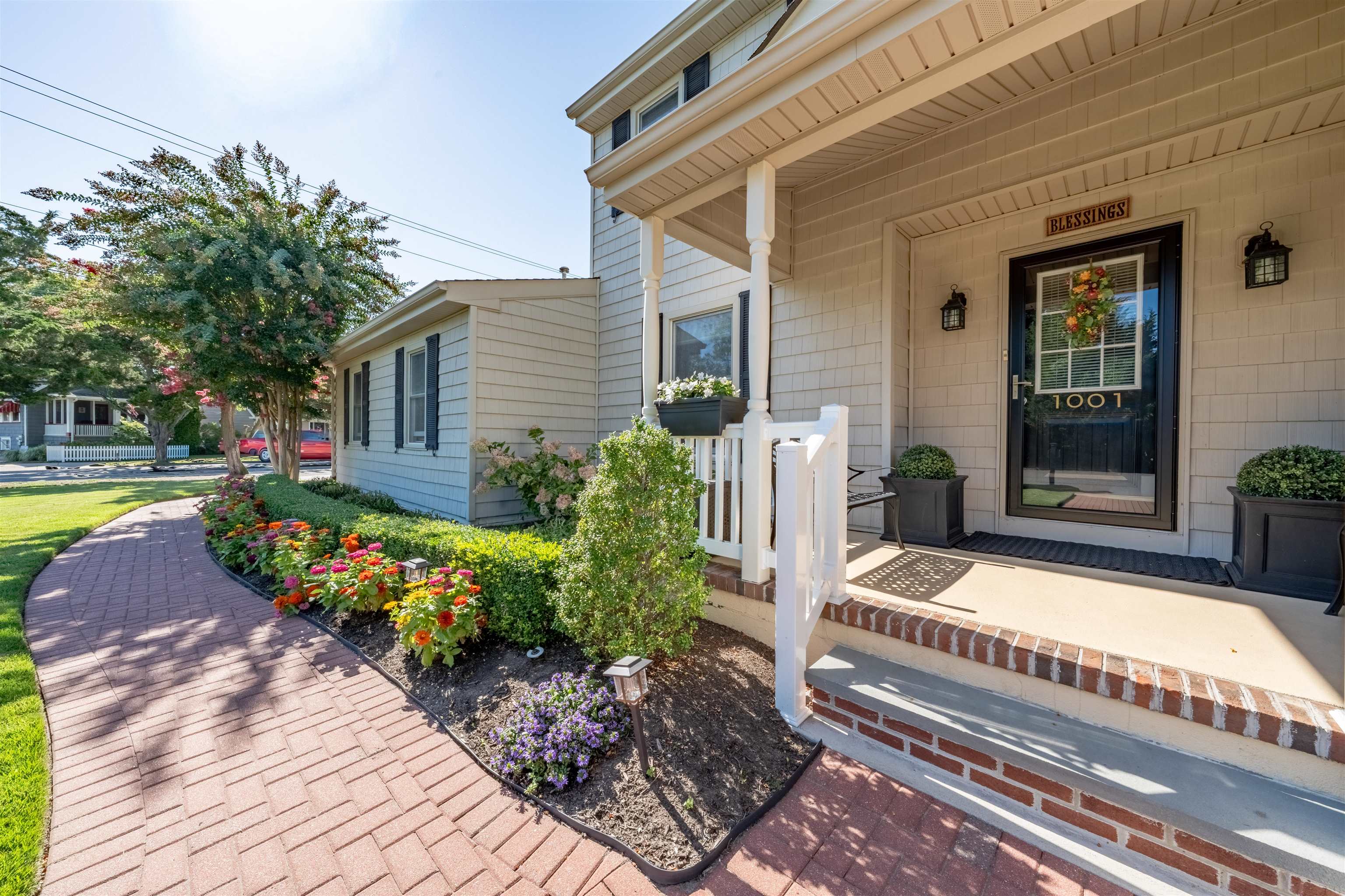 Welcome to 1001 Cape May Avenue! This beautifully maintained and thoughtfully updated, classic two-story Colonial sits on an impeccably landscaped corner lot in one of Cape May s most peaceful residential pockets just five blocks from the beach and close to Kiwanis Park, the Cape May Tennis Club, and the Physick Estate. Over the past several years, great care has been invested into refining the home, resulting in warm and welcoming spaces that reflect true pride of ownership inside and out. A brick-paver walkway leads to the covered front porch and central foyer with slate flooring. To the left is the formal dining room to the right, a custom-crafted flex room with built-ins and closets, currently used as a den but easily suited for a first-floor bedroom. Toward the rear of the home is a gracious living area featuring hardwood floors, crown molding, a beautifully remodeled full bath, and a custom gas fireplace with tiled hearth and handcrafted surround. An adjacent 19' x 11' four-season room with cathedral ceilings, tile flooring, and year-round temperature control provides a bright and comfortable gathering space in every season. The custom kitchen offers abundant cabinetry, granite countertops, stainless steel appliances including a gas cooktop, double ovens, beverage cooler, and built-in GE Monogram refrigerator along with a peninsula for casual seating. A breakfast area with additional custom cabinetry opens to a sun-filled family room highlighted by heated tile floors, a beadboard cathedral ceiling, and windows on three sides. Upstairs are three generously sized guest bedrooms, a hall bath with custom tilework and a seamless-glass shower enclosure, and a convenient laundry closet. The large primary suite includes an updated ensuite bath with a tiled shower and glass enclosure. Outdoor living is exceptional. The grounds were professionally designed and meticulously maintained, with crape myrtles, hydrangeas, rose bushes, mature shrubs, manicured beds, and a fully irrigated lawn. Plantings were carefully arranged to create privacy throughout the yard, especially around the brick-paver patio, grilling area with trellis, walking paths, and charming shed with window boxes. The brick-paver driveway and walkways complement the home s exterior, which features low-maintenance vinyl cedar-impression siding and vinyl railings. Additional features include a rare three-car garage (two full-depth bays plus a third ideal for bikes or storage), dual-zone natural gas heat and central air, and two water meters one dedicated to irrigation. Whether you're in search of a spacious year-round residence, a summer home with room to host family and guests, or a property with strong potential as a vacation rental, this home offers an exceptional opportunity along prestigious Cape May Avenue. Thoughtful updates, quality improvements, and beautifully finished indoor and outdoor spaces create a truly move-in-ready setting, allowing new owners to enjoy the best of Cape May with minimal effort or expense. Its proximity to the beach, Kiwanis Park, the Tennis Club, and downtown attractions further enhances its appeal, making it a rare offering in one of the community s most sought-after neighborhoods.