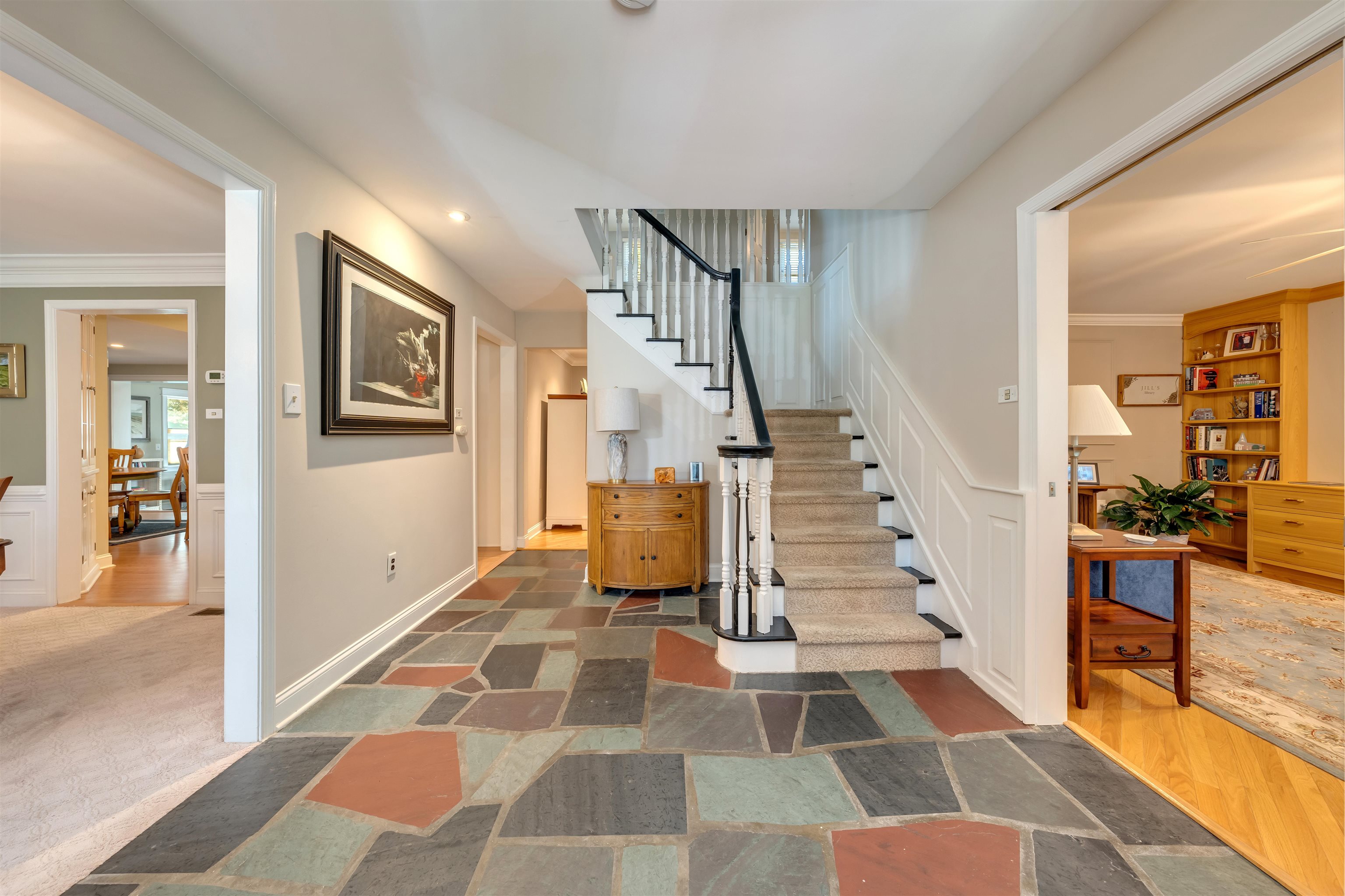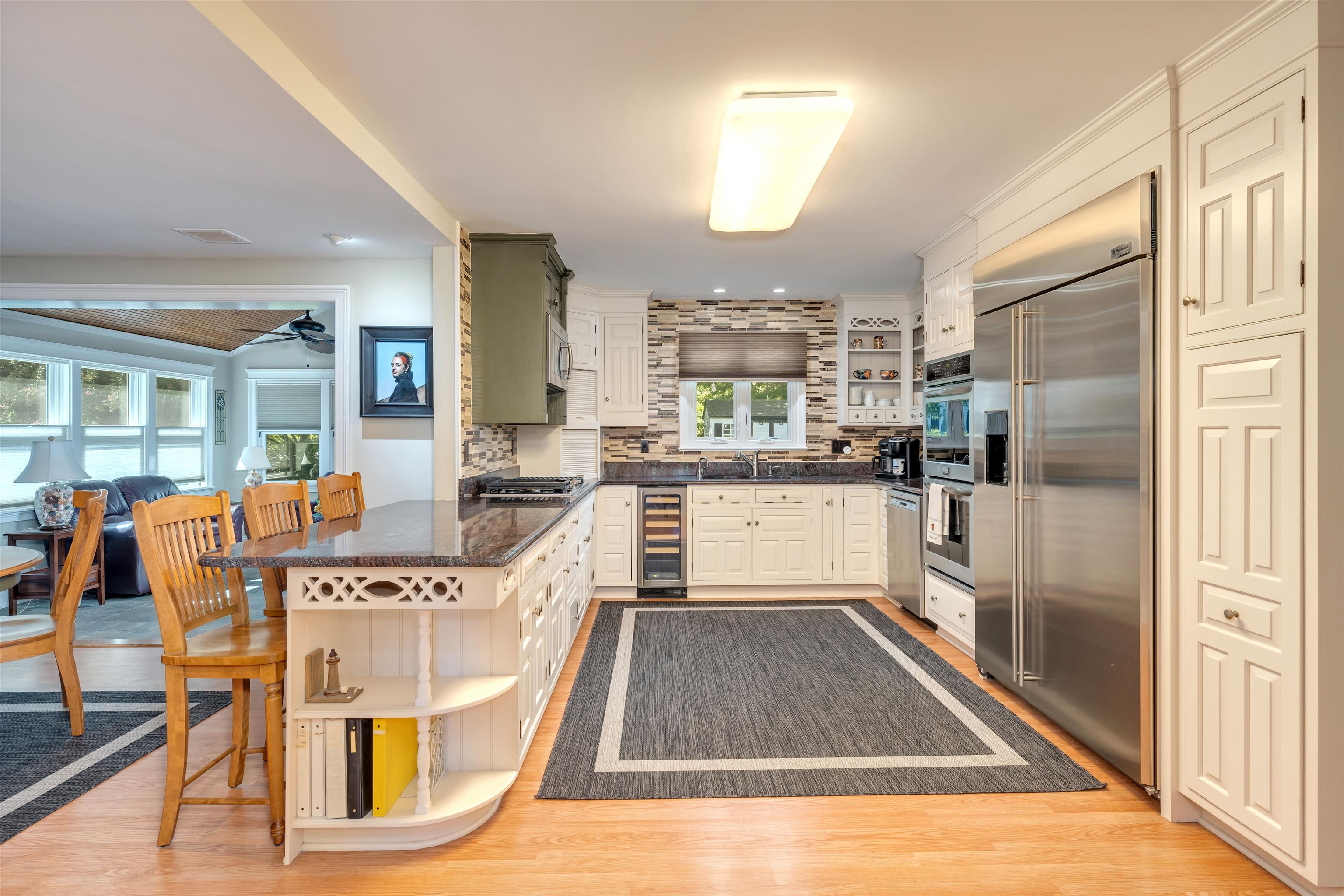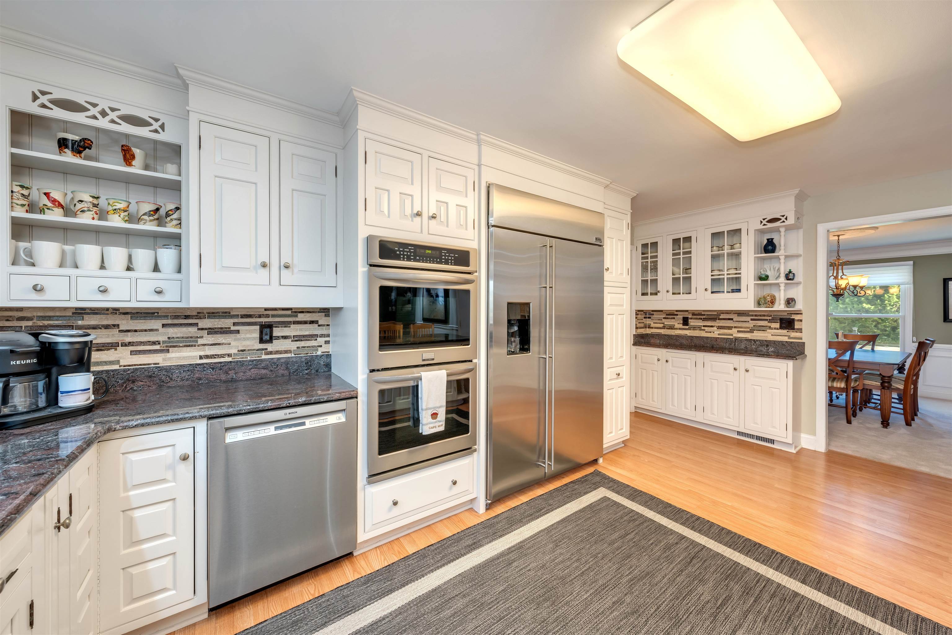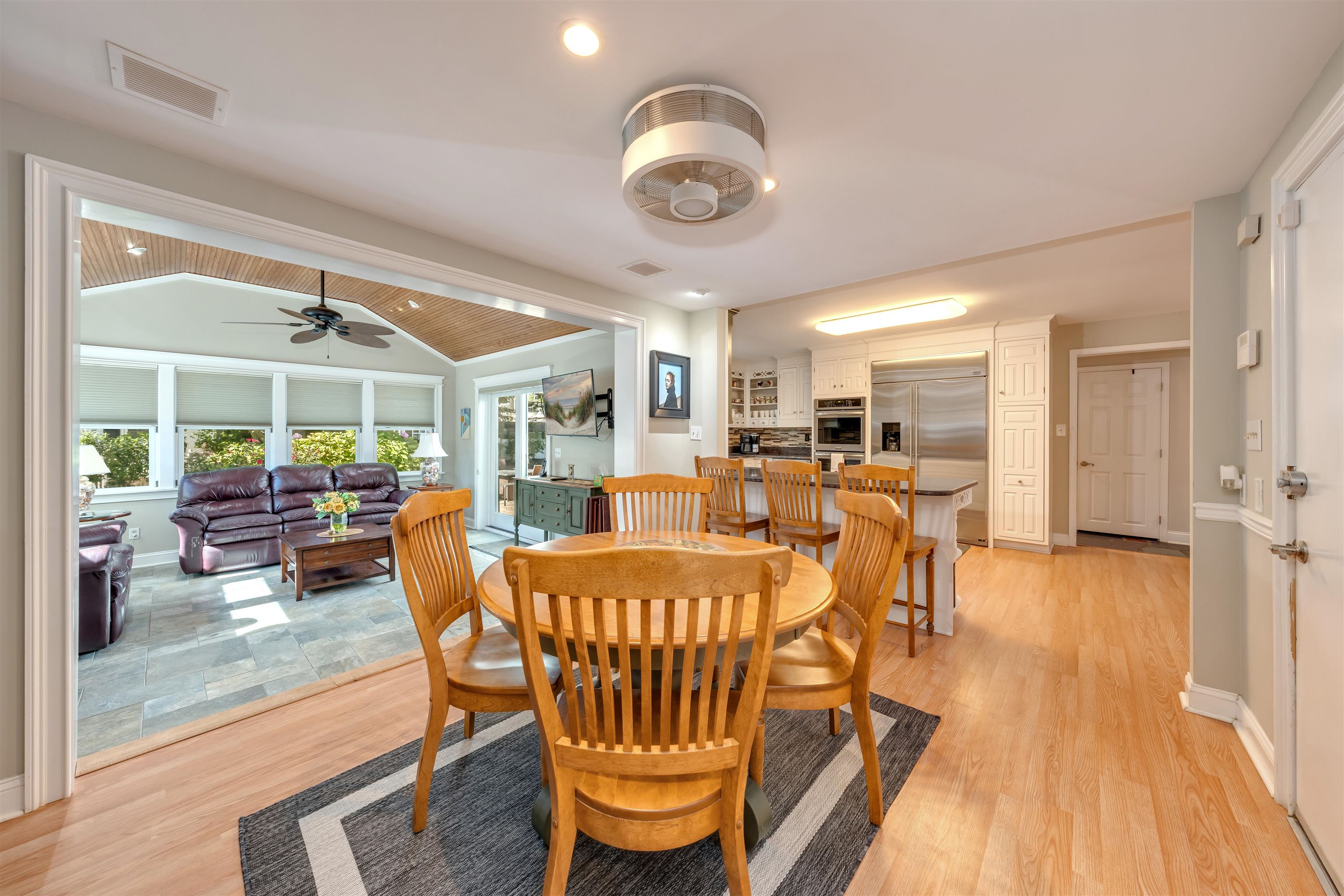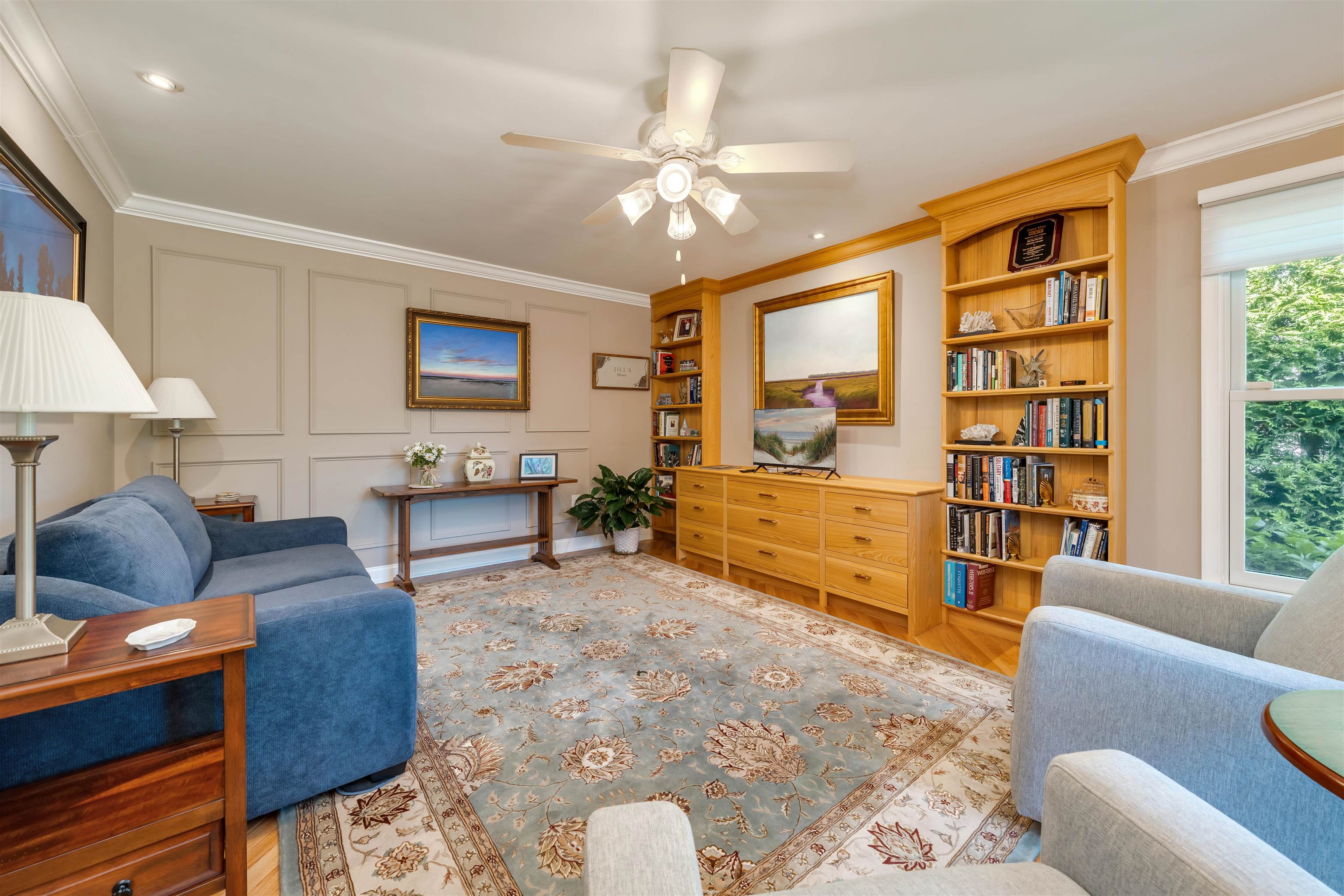 Welcome to 1001 Cape May Avenue! This beautifully maintained and thoughtfully updated, classic two-story Colonial sits on an impeccably landscaped corner lot in one of Cape May s most peaceful residential pockets just five blocks from the beach and close to Kiwanis Park, the Cape May Tennis Club, and the Physick Estate. Over the past several years, great care has been invested into refining the home, resulting in warm and welcoming spaces that reflect true pride of ownership inside and out. A brick-paver walkway leads to the covered front porch and central foyer with slate flooring. To the left is the formal dining room to the right, a custom-crafted flex room with built-ins and closets, currently used as a den but easily suited for a first-floor bedroom. Toward the rear of the home is a gracious living area featuring hardwood floors, crown molding, a beautifully remodeled full bath, and a custom gas fireplace with tiled hearth and handcrafted surround. An adjacent 19' x 11' four-season room with cathedral ceilings, tile flooring, and year-round temperature control provides a bright and comfortable gathering space in every season. The custom kitchen offers abundant cabinetry, granite countertops, stainless steel appliances including a gas cooktop, double ovens, beverage cooler, and built-in GE Monogram refrigerator along with a peninsula for casual seating. A breakfast area with additional custom cabinetry opens to a sun-filled family room highlighted by heated tile floors, a beadboard cathedral ceiling, and windows on three sides. Upstairs are three generously sized guest bedrooms, a hall bath with custom tilework and a seamless-glass shower enclosure, and a convenient laundry closet. The large primary suite includes an updated ensuite bath with a tiled shower and glass enclosure. Outdoor living is exceptional. The grounds were professionally designed and meticulously maintained, with crape myrtles, hydrangeas, rose bushes, mature shrubs, manicured beds, and a fully irrigated lawn. Plantings were carefully arranged to create privacy throughout the yard, especially around the brick-paver patio, grilling area with trellis, walking paths, and charming shed with window boxes. The brick-paver driveway and walkways complement the home s exterior, which features low-maintenance vinyl cedar-impression siding and vinyl railings. Additional features include a rare three-car garage (two full-depth bays plus a third ideal for bikes or storage), dual-zone natural gas heat and central air, and two water meters one dedicated to irrigation. Whether you're in search of a spacious year-round residence, a summer home with room to host family and guests, or a property with strong potential as a vacation rental, this home offers an exceptional opportunity along prestigious Cape May Avenue. Thoughtful updates, quality improvements, and beautifully finished indoor and outdoor spaces create a truly move-in-ready setting, allowing new owners to enjoy the best of Cape May with minimal effort or expense. Its proximity to the beach, Kiwanis Park, the Tennis Club, and downtown attractions further enhances its appeal, making it a rare offering in one of the community s most sought-after neighborhoods.